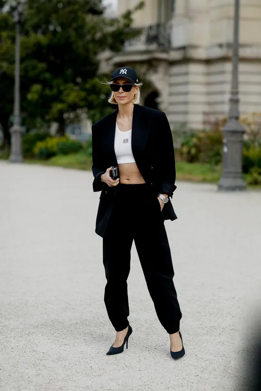 С трениками, кроп-топом и жакетом