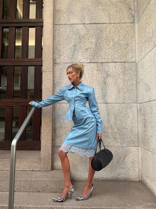 Приобретая юбку в комплекте с жакетом, вы получает «два в одном». И можете отложить жакет и носить юбку отдельно, а можно не думать об аутфите и сразу примерить костюм. Фактура кожи добавляет аутфиту дерзости, а нежное кружево — мягкости. В итоге образ выглядит необычно и актуально. Юбка с кружевом — тот самый элемент, который работает в разных настроениях. Все зависит от того, какой «верх» вы выберите.