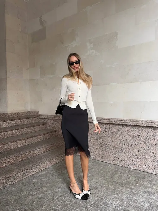 С полной уверенностью заявляем: в этом сезоне кружево выходит за пределы привычных сценариев. Оно больше не ассоциируется только с вечерними выходами или домашней эстетикой. И универсальное решение — юбка с кружевом. Она легко вписывается в повседневный гардероб и работает как акцент, который меняет весь образ. Классической юбкой уже сложно удивить, а вот детали решают многое. Кружевной подол сделает даже простой комплект более женственным. Она выглядит деликатно, но при этом цепляет взгляд. А дальше все строится вокруг баланса. С чем ее носить? Лучше всего сочетать такую юбку с базовым «верхом». Ниже — шесть работающих комбинаций, которые сможет повторить каждая.