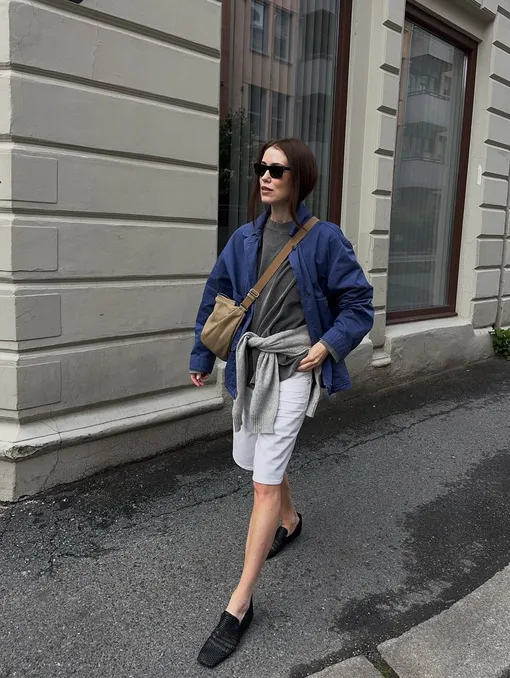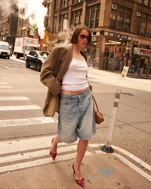 Шорты и каблуки — сочетание, к которому хочется возвращаться. Туфли-лодочки делают образ более женственным. В пару к ним подойдут майка и пиджак. Минимум деталей — и при этом ощущение продуманности. Джинсовые шорты-бермуды легко адаптируются под любой сценарий. Меняется обувь — меняется настроение. И в этом их главное преимущество: вы можете собирать образы под себя и свой ритм жизни, не усложняя стилистический процесс.