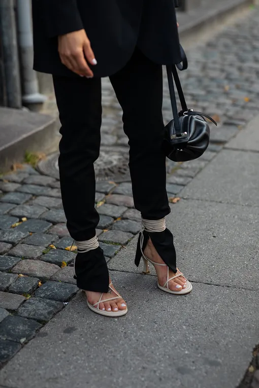 Компромиссный вариант для тех, кто любит нарядиться, но избегает вычурности. Это могут быть мюли на kitten heels, слинг-бэки или «гладиаторские» сандалии, которые триумфально вернулись на весенне-летние подиумы. Лайфхак от самых модных девушек: оборачивайте ремешки вокруг щиколотки прямо поверх джинсов — так точно не останется шанса остаться незамеченной.