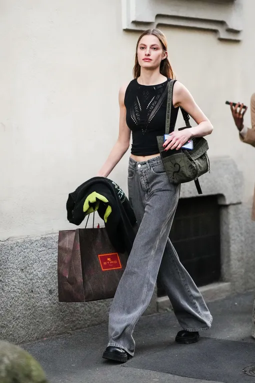 Здесь работает тот же принцип, что и с платформами. Массивная подошва помогает сбалансировать объем в нижней части джинсов, прибавляет роста и зрительно вытягивает весь силуэт. Пожалуй, лучшее из возможных сочетаний для повседневных образов: в отличие от каблуков или платформ, в такой обуви вам будет удобно при любых обстоятельствах — даже если придется проходить пешком буквально весь день.