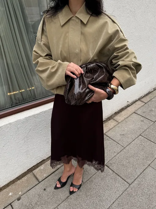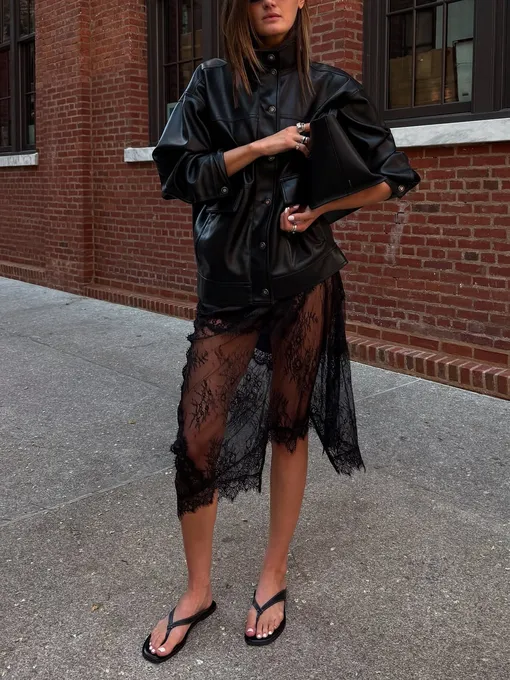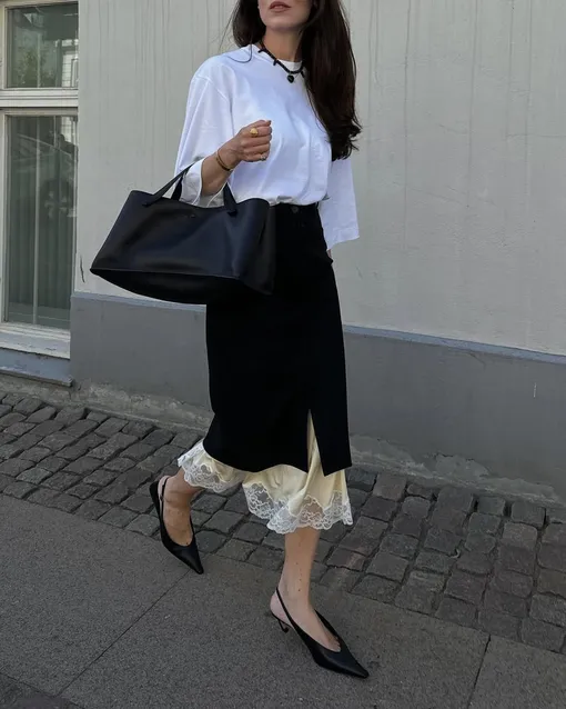 За последние сезоны привычное представление о нижнем белье кардинально изменилось — модельеры практически хором заявили: прятать его больше нет смысла. Некоторые марки предложили бельевые элементы как самостоятельные акценты или в комбинации с базовыми вещами — здесь, конечно, особую роль играет многослойность. Другие же выбрали более деликатный путь, интегрировав в образы лишь тонкие отсылки: от фактурных корсетов до романтичных лент и струящихся тканей. Но если мысль о демонстрации бельевых элементов кажется вам чересчур смелой, поддержать этот эстетический тренд можно более сдержанным способом — как раз с помощью юбок с кружевным подолом. Выбор цвета — ключ к созданию актуального образа. Базовые однотонные модели в кремовом, белом или черном исполнении — безошибочный вариант для тех, кто ценит минимализм.