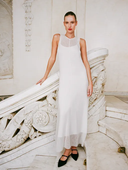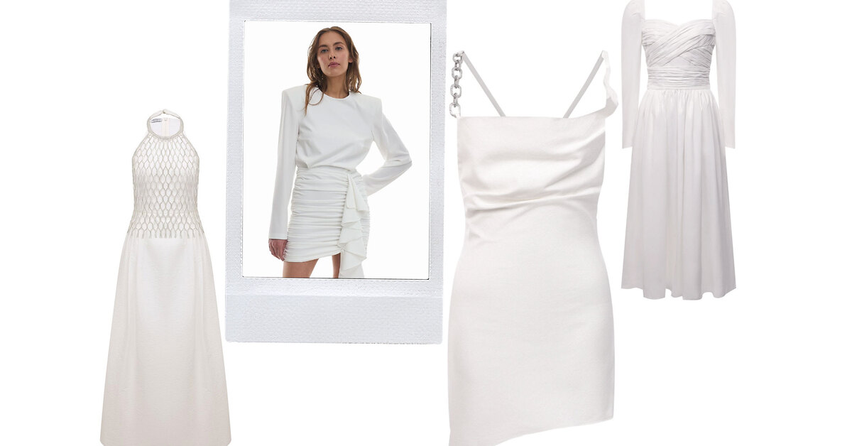 Любительницам минимализма стоит начать поиск с комбинаций. «Дорогим» и праздничным такую модель сделает натуральный шелк. Еще один простой вариант — приталенный А-силуэт длины миди, который сложно визуально «перегрузить». Детали и декор пусть ограничиваются лишь вашей фантазией: пышные рукава, как у Loewe, драпировка, асимметрия, топ-халтер (Fisico и Brunello Cucinelli) и вышивка — можно все, главное — не сразу. Наконец, самые смелые невесты должны обратить свое внимание на мини. Идеальные варианты — у Giuseppe di Morabito и Loulou.