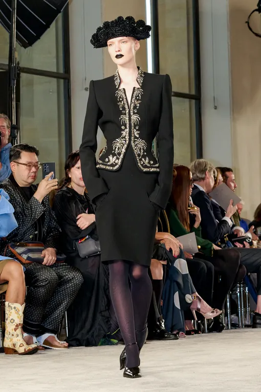 Этой зимой тренд на декор занимает центральное место на модной арене. На подиуме от ведущих модных Домов мы видим обилие деталей: пайетки, кристаллы, кружево, бахрома и даже перья. Жакеты становятся настоящими произведениями искусства, сочетая в себе роскошь и практичность. Особенную любовь дизайнеров в этом сезоне завоевала вышивка. Она появилась на жакетах Schiaparelli, Giorgio Armani и у многих других брендов. Строгих правил, какой рисунок выбирать, конечно, нет. Вы можете обратить внимание и на золотой декор, и на цветной, с абстрактным или флоральным мотивом. Все зависит от ваших предпочтений. Единственная рекомендация — выбирать в дополнение к такому пиджаку более простые и лаконичные опции. Например, брюки или юбки без декора. Иначе вы рискуете «перегрузить» образ. Другим большим трендом стали блестящие жакеты. Поэтому если в новогоднюю ночь вы планируете сиять, то точно стоит выбрать опции с пайетками или стразами. Что касается цвета, то здесь все зависит от ваших предпочтений. Мы советуем обратить внимание на яркую палитру, которая в сочетании с блеском будет смотреться очень празднично. Однако если вы хотите примерить более классический образ, то остановиться стоит на черном, коричневом или белом цветах. К тому же благодаря своей универсальности они составят отличные комбо практически со всеми вещами, которые уже есть в вашем гардеробе. Не менее интересная и яркая тенденция этого сезона — фактурные материалы. Особенное внимание нужно уделить жакетам из бархата, жаккарда или шелка. Во-первых, они выглядят невероятно красиво. А во-вторых, в сочетании с опциями из других материалов они будут выглядеть очень эффектно. Такой образ точно поможет оказаться в центре внимание и произвести на всех вау-эффект. Одним словом — есть из чего выбрать.