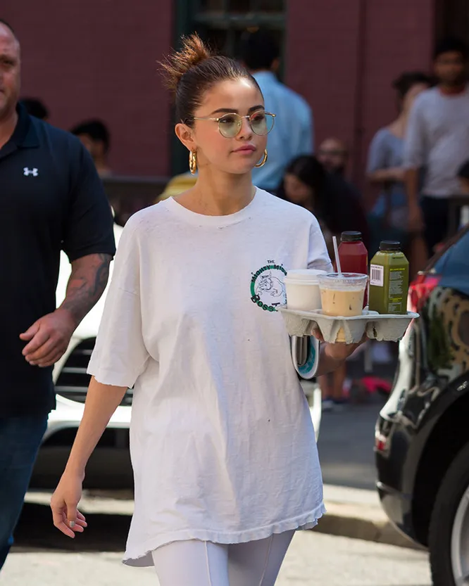 В жару всегда спасают вещи из натуральных тканей, а потому хлопок вне конкуренции. Да, в шелковом топе наверняка будет прохладнее, но и в уходе он гораздо прихотливее. Удлиненные модели можно завязать на животе и носить с низом на высокой талии. Для расслабленных образов подойдут широкие фасоны с приспущенными рукавами: их можно носить навыпуск. А некоторые дизайнеры, например Виктория Бекхэм и Майкл Корс, сделали обычную майку романтичной, украсив край рукава полукруглым орнаментом и оборками. Наденьте их с широкими льняными брюками и броскими аксессуарами — и получится идеальный лук для лета в городе.