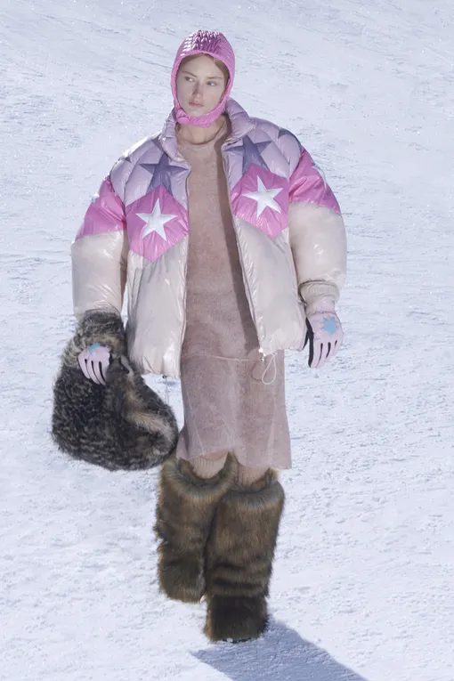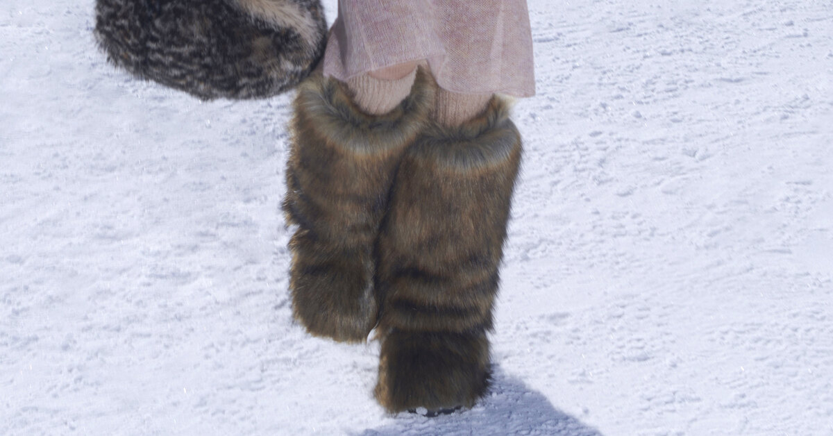 Утепляемся как можем, тем более мех сегодня в центре модного разговора. Этот тренд вернул нам шубы, манишки, шарфы и даже шапки. Логичное продолжение — меховая обувь. Пушистые сапоги легко берут на себя главную роль в образе и не нуждаются в дополнительных аргументах. Унты — это традиционная обувь народов крайнего Севера. Их всегда ценили за тепло и прочность, а классические варианты делаются из шкуры оленя или лося и плотной войлочной подошвы. Сегодня эта утилитарная база читается иначе: как часть продуманной зимней капсулы. Индустрия давно это поняла — еще несколько лет назад такие пары уверенно вышли на подиумы. Тут нельзя не вспомнить показ Miu Miu осень-зима 2021 на горнолыжном курорте Кортине д'Ампеццо, отныне самом модном месте Доломитовых Альп. И сейчас они снова на пике популярности. Современные версии бывают разными: высокие и укороченные, в формате сапог или ботинок, с длинным пушистым мехом или «кудрявой» фактурой. И никаких одинаковых моделей: унты работают на индивидуальность. И, конечно, на рынке представлены разные эко-аналоги.