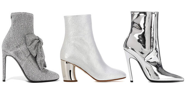 Серебряный – новый черный, особенно если дело касается обуви. Запустил волну обожания металлических черевичек Демна Гвасалия, представив в 2016-м ботильоны и сапоги Balenciaga из зеркальной кожи. Конечно, он не был первым, кто предложил нам серебряную обувь, но после того, как его творения выгуляла Ким Кардашьян, стало понятно, что металлик на ближайшие пару сезонов станет любимым цветом всех модниц. Если на высокие серебряные сапоги решится не каждая, то ботильоны легко впишутся в любой гардероб.