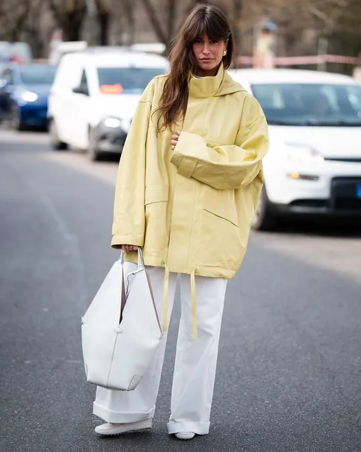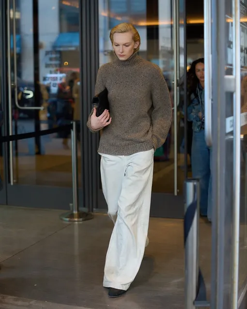 Если на зимней распродаже вы нашли идеальный свитер с высоким горлом, дайте ему шанс сыграть главную роль. Когда на улице становится теплее, верхняя одежда иногда кажется лишней. В такой момент свитер сработает как самостоятельный элемент образа. В дуэте с белыми джинсами он выглядит легче и не утяжеляет силуэт. В качестве обуви подойдут кроссовки, благо, что выбор есть. А в руки можно взять клатч. Такой аксессуар давно перестал ждать вечернего выхода и спокойно интегрируется в повседневную капсулу.