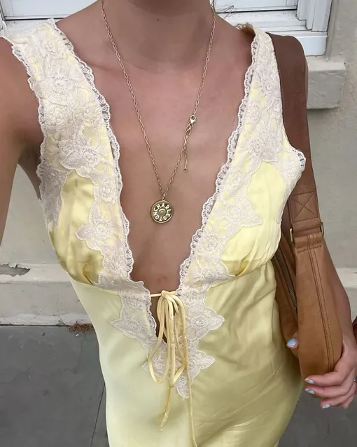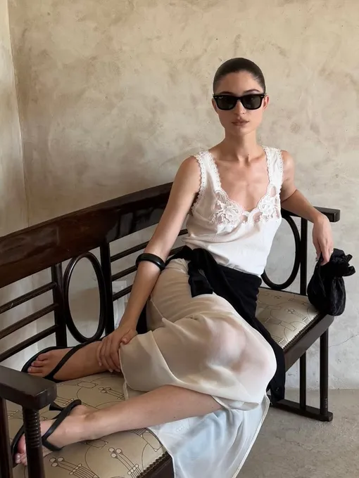 Винтажная эстетика обладает особой притягательностью. Она — о тонкой романтике, скрытой сексуальности и изысканности, которая читается без лишних деталей. И если вы устали от минималистичных шелковых комбинаций, которые правили бал последние несколько лет, самое время присмотреться к их архивным альтернативам. В 2025 году они окончательно закрепились в статусе горячего тренда, заняв место как в коллекциях ведущих брендов, так и в гардеробах фэшн-инфлюенсеров. Отдельное внимание сейчас приковано к платьям-комбинациям. Да, тем самым, которые когда-то были частью нижнего белья, а теперь возвращаются в свежих интерпретациях. Что именно отличает ретро-силуэты? Прежде всего — вдохновение конкретными эпохами. Это может быть ампирная талия и изящная линия плеч с укороченным рукавом или с акцентной линией груди и глубоким, но утонченным декольте, как в 50-х. И, конечно, кружево. Что касается цветовой гаммы, то особенно выигрышно смотрятся вариации в классической палитре: черный, молочный или коричневый. Нежные пастельные тона сделают образ более воздушным, а благородные темные — драматичным и выразительным. Актуальны и принты — от мелкого горошка до винтажных цветочных узоров.