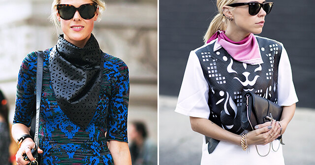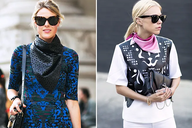Наверняка у вас уже есть целая коллекция шелковых шарфов и платков – так вот, пришло время достать «экспонаты» с полки комода и поэкспериментировать с ними. За вдохновением я решила обратиться к блогерам и музам стрит-стайл-фотографов. Предлагаю и вам взять на заметку, как они завязывают платки, добавляя их к самым разным образам. Причем одними классическими каре дело не ограничивается – в ход идут и банданы, и квадратные платки небольшого размера. Моими фаворитами стали аксессуары с геральдическими узорами – как у Леандры Медин из manrepeller.com. Достаточно одного такого яркого пятна, чтобы преобразить весь внешний вид.