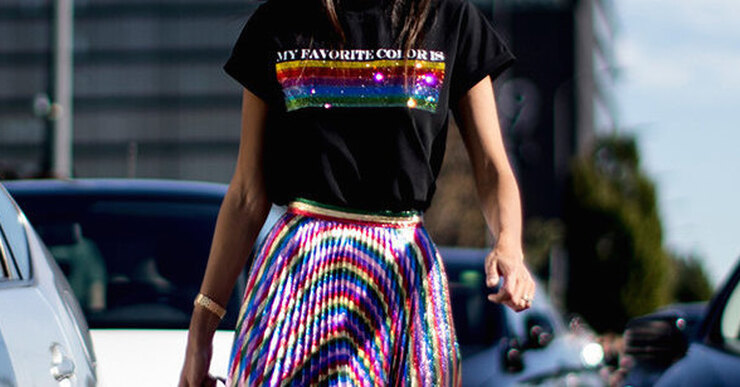 В осенне-зимних коллекциях текущего сезона дизайнеры не пожалели блеска: глиттер, пайетки и, конечно же, люрекс. Целые комплекты из люрекса можно было лицезреть на показах Gucci, где сияющую мелкую плиссировку было видно с последнего ряда. Где-то глубоко в нашем сознании эта металлизированная ткань ассоциируется с чем-то вульгарным, но времена меняются — и пора оставить предрассудки в прошлом и обзавестись притягивающей взгляды вещицей. Для осенней поры особенно актуален трикотаж с добавлением люрекса: топы, джемперы, платья, брюки. Икона французского стиля Жанна Дамас уверена, что нет лучшего наряда на вечеринку, чем переливающийся топ. В преддверии Хеллоуина, новогодних праздников и корпоративов это особенно актуально.