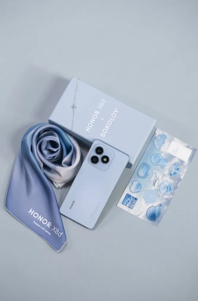 В честь выхода новой модели X8d Honor представили коллаборацию с Sokolov — лимитированный бокс с аксессуарами, вдохновленный идеей стиля как формы самовыражения. Внутри эксклюзивной коллекции — изящный платок, браслет Sokolov с парящим самолетом и вдохновляющие стикеры для нового смартфона Honor X8d. Бренды обещают, с их помощью можно создать абсолютно свой образ, который подчеркнет вашу индивидуальность.