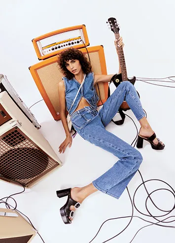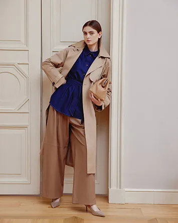 Для весенне-летней коллекции Maje источником вдохновения выбрали 70-е: нас ждут брюки-клеш, мюли на крупной платформе, платья, блузы и топы с цветочным узором, много бахромы и денима – очень вовремя, учитывая, что этим летом после двухлетнего перерыва возвращаются музыкальные опен-эйры в Европе.