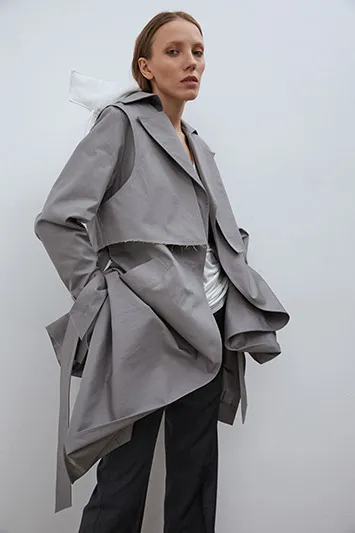 Art-минимализм — именно так определяет свое направление молодой российский бренд Room 513. Знакомство с ним советуем начать с внимательного изучения верхней одежды: марка предлагает отличные альтернативы классическим тренчам, буквально «пересобирая» фасон и добавляя к нему дополнительные элементы из других стилей.