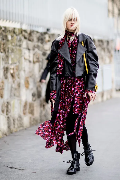 Грубые ботинки + женственное платье