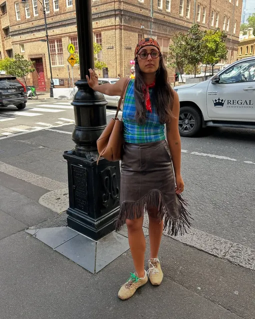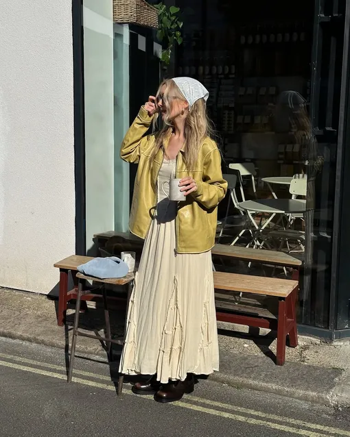 Возвращение бохо — не просто очередной тренд, а идеальное попадание в фестивальную атмосферу. Нежное кружево, бахрома, замша, винтажные текстуры — все это снова актуально. Чтобы избежать стилизации «по учебнику», вдохновляйтесь образами Сиенны Миллер разных лет на фестивале Гластонбери: легкое платье с воланами, дополненное широким ремнем с заклепками, цветастое миди в паре с грубыми кожаными ботинками или винтажная яркая винтажная куртка в тандеме с черным топом и мини-юбкой. Этот микс делает образ одновременно воздушным, стильным и комфортным. И не забывайте про аксессуары — косынки, массивные очки и шапочки в технике кроше.