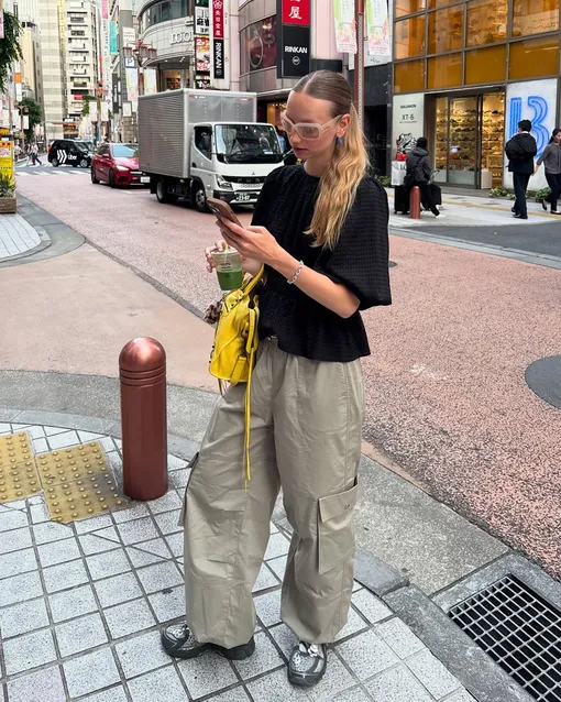 Максимальная функциональность выходит за пределы походов и активного отдыха. Стиль горпкор — это технологичная одежда, стилизованная как высокая мода. Так что если у вас есть брюки-карго и треккинговые кроссовки — аутфит готов. Сочетайте их с простым «верхом», кроп-топом или, наоборот, с чем-то максимально женственным. Финальных штрих — солнцезащитные очки футуристичной формы.