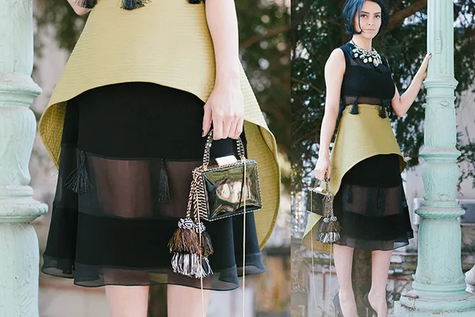 В апреле многие мои близкие люди празднуют дни рождения – пришлось отправиться на поиски нового коктейльного платья. Удача улыбнулась на любимом сайте moreislove.com, где были представлены сразу две свежие коллаборации. Сестры Рубан создали эффектные баски для быстрой трансформации привычного образа, а молодой грузинский дизайнер Гола Дамиан – платья с прозрачными вставками и бахромой. Сначала я влюбилась в платья, но, увидев съемку More is Love, в которой Нино Элиава совместила их с басками, поняла, что носить эти вещи буду только в тандеме. Кстати, на роль главной героини фотосессии пригласили еще одного всеми любимого дизайнера – сказочную красавицу Лало Долидзе!