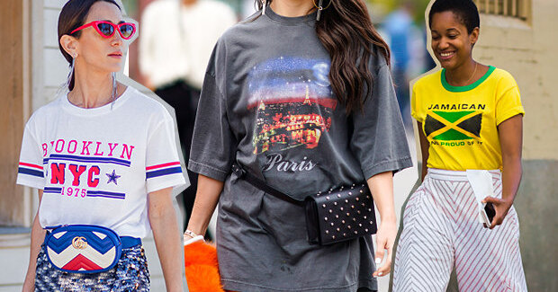 Кто бы мог подумать, что футболки, которыми забиты сувенирные лавки в самых популярных локациях для путешественников, войдут в число любимых вещей стритстайлеров. Однако с легкой руки Демны Гвасалии, который выпустил под брендом Balenciaga типичную «туристическую» футболку с изображением главного символа Парижа, это стало реальностью. Модные и находчивые сразу смекнули, зачем платить 300 евро за футболку от именитого французского модного Дома, когда можно обойтись «оригинальной» футболкой с названием любой географической точки намного дешевле. К тому же и город можно выбрать самостоятельно. Поэтому вместо магнитов везем из отпуска футболки и смело носим с джинсами и костюмами.