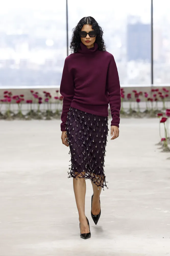 С каким низом носить такую модель? Первый и самый беспроигрышный вариант — это джинсы: причем они могут быть выполнены в любых силуэтах — от трендовых «сигарет» до классических прямых. Еще один идея — юбка в тон, которая поможет создать монохромный комплект (лучшие референсы можно увидеть на показах Carolina Herrera и Michael Kors). Наконец, простые брюки в базовых оттенках никогда не будут лишними — они придадут строгости повседневному образу и идеально впишут его в офисно-деловой контекст. Ниже собрали лучшие фиолетовые свитеры, которые можно носить до самой весны.
