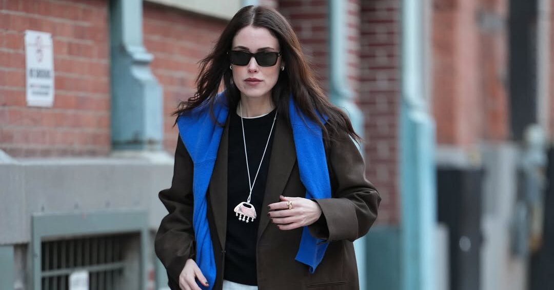 Правило простое: берите кобальтовую вещь и вписывайте ее в образ, где по логике она не планировалась. Самый легкий шаг — аксессуары. Кепка, шапка, шарф, сумка, ремень или даже носки (колготки). Синюю шапку носите с худи, джинсами и кроссовками. Если хотите усложнить, добавьте элемент с анималистичным принтом. Или черный тотал-луку дополните кобальтовыми носками или кожаными перчатками. Если чувствуете уверенность, внедряйте акцент в более насыщенные сочетания: ярко-синий шарф миксуйте в дуэте с леопардовым пальто, или к красным туфлям-лодочкам подберите колготки этого тона. Поддержите аксессуар обувью в тон, и ансамбль станет выразительнее. А если в гардеробе уже есть кобальтовый свитер, жакет, платье или брюки, эксперимент будет еще смелее. К примеру, накиньте джемпер поверх любой верхней одежды. Или носите брюки с блузой в бело-фиолетовый цветочек. Электрический синий работает как художественный жест: всего один мазок, и привычная комбинация начинает звучать по-новому. Иногда достаточно одного цвета, чтобы выстроить весь образ вокруг него.
