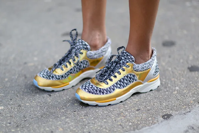 Еще сравнительно недавно сочетание спортивной обуви и «кукольных» платьев ассоциировалось исключительно с наивными тинейджерскими представлениями о моде или в лучшем случае со сценическими образами Лили Аллен. Однако за последнюю пару сезонов ситуация в корне изменилась: кроссовки в компании романтичных сарафанов на тонких бретелях, брюк-дудочек, объемных пальто и других вещей, явно не созданных для активного отдыха, регулярно попадают в объективы streetstyle-фотографов на Неделях моды. А любимицы модных блогеров в диапазоне от Алексы Чанг и Кары Делевинь до Сьюзи Лау и Вики Газинской не устают изобретать все новые комбинации с it-обувью в качестве главного ингредиента. Благо дизайнеры не собираются ограничивать полет фантазии девушек и уже второй сезон подряд продолжают подливать масла в огонь, выпуская на подиумы (в том числе и на показах haute couture) моделей в кроссовках – причем не простых, а украшенных твидом, кружевом и кожей питона (Chanel) или блестящими кристаллами и пайетками (Dior, Saint Laurent). Впрочем, не все увлеклись декором: более «прозаичные», но оттого не менее модные варианты можно найти в коллекциях Isabel Marant, Maison Martin Margiela и Valentino – да и спортивные бренды-гиганты, почувствовав нешуточную конкуренцию со стороны модных Домов, тоже представили множество интересных новинок. Носить кроссовки в новом сезоне стоит по тем же правилам, что и в предыдущем: поощряется игра на контрастах и максимальная самоирония – за образец для подражания можно взять моделей на «продуктовом» осенне-зимнем шоу Chanel или посетительниц показов Недели моды, проходящей сейчас в Нью-Йорке. Кроме того, спортивная обувь будет отлично сочетаться со знаковыми вещами осени, будь то объемные вязаные свитера, как у Michael Kors, или кейпы, как у Burberry Prorsum.