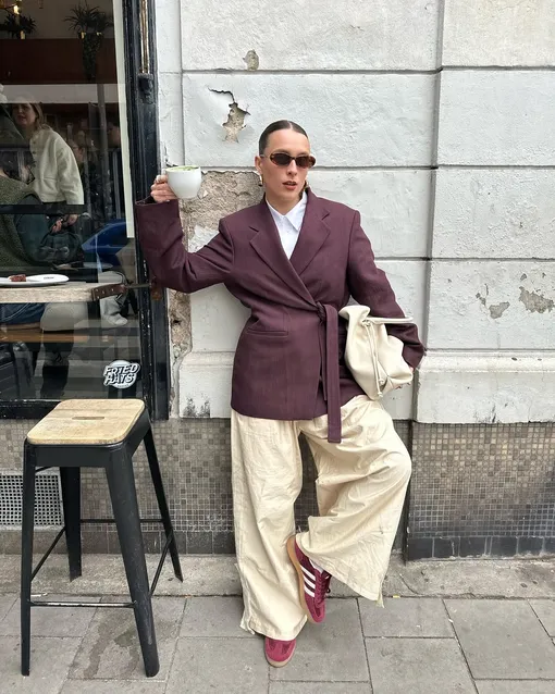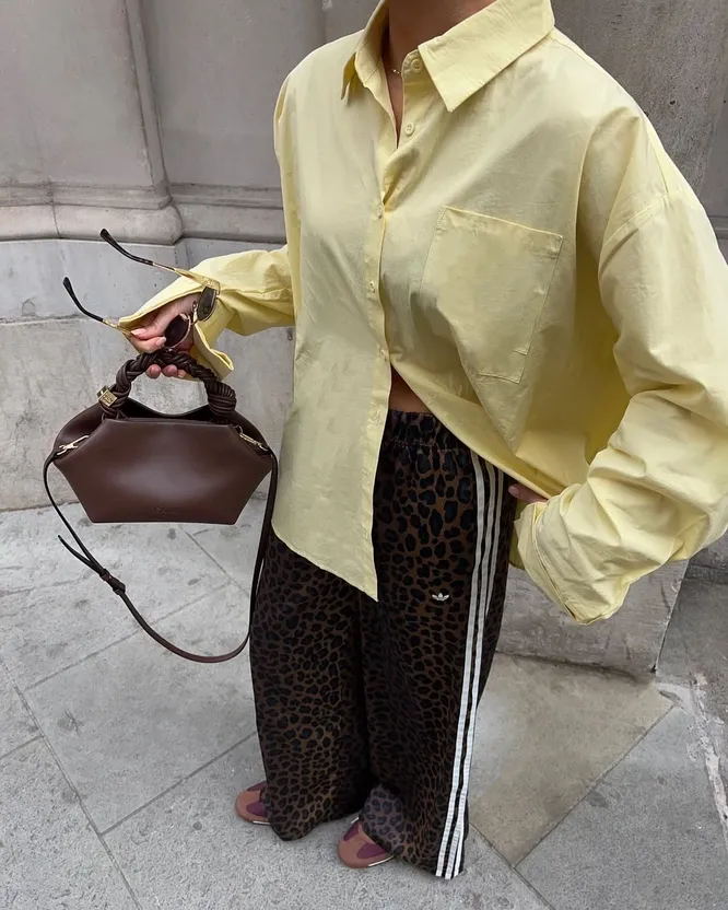Устойчивое проникновение спортивного стиля в повседневную и даже деловую моду происходит уже не первый сезон. Стиль спорт-шик давно перестал быть просто трендом, превратившись в образ жизни. Идея проста: сочетаем расслабленные силуэты с классическими элементами гардероба, играя на контрастах форм, тканей и культурных кодов. Пожалуй, самый универсальный и понятный способ примерить этот стиль — объединить рубашку с расслабленными спортивными брюками. Какую модель выбрать? «Верх» может быть любым. Например, подойдут модели оверсайз. Для более формального эффекта вы можете выбрать прямую рубашку классического кроя. Также допустимы приталенные версии — они хорошо структурируют образ и создают баланс с объемным низом. Цветовая палитра — от белого до голубого и полоски. Что касается «низа», то термин «треники» в этом контексте звучит разнообразно. Это совсем не обязательно должны быть привычные штаны из трикотажа с лампасами (хотя их тоже не списываем со счетов). Но более универсальные изделия — из тонкого трикотажа в нейтральной палитре на резинке или завязках. А в прохладные дни сверху можно накинуть кардиган или блейзер.
