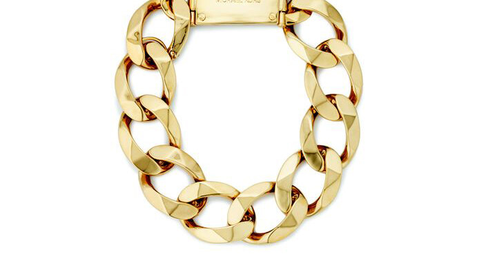 Массивный браслет Michael Kors выглядит так, словно попал к нам прямиком из 80-х. Буду носить его вместо часов: он подходит ко всем вещам из моего гардероба и занимает большую часть запястья.