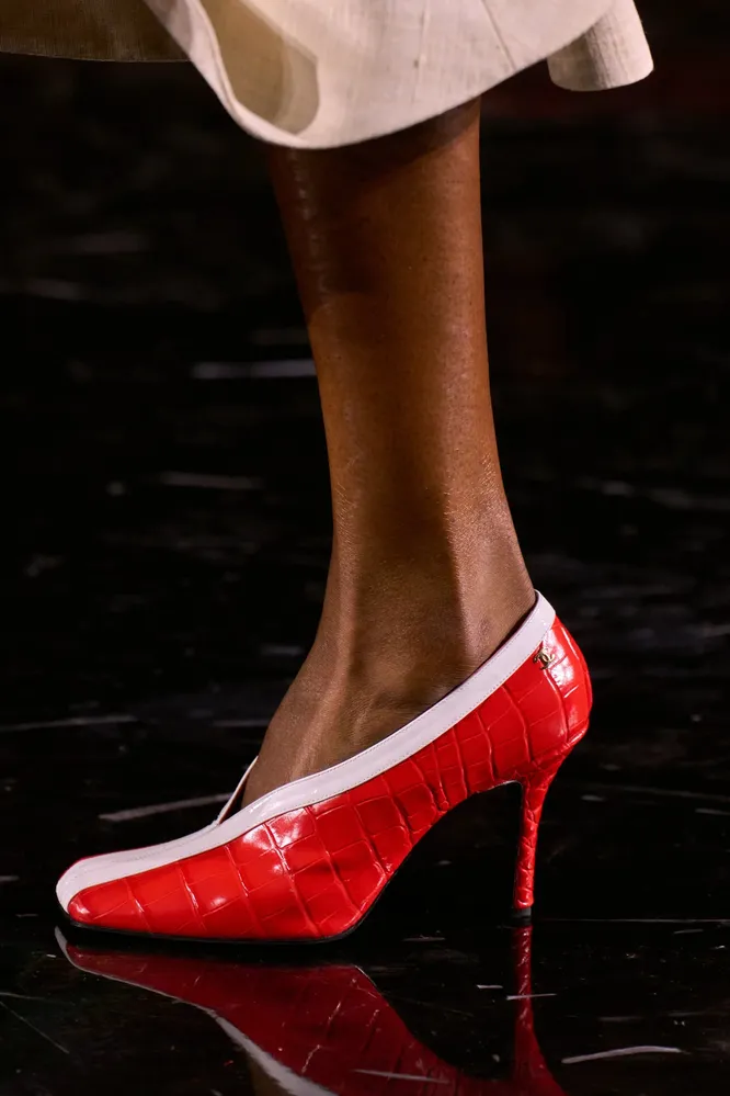 Туфли – та самая деталь образа, которая всегда задает настроение. В этом сезоне на модной арене правит максимализм с его необычными формами и яркими цветами, и многие дизайнеры решили переосмыслить те вещи, которые годами служили базой вне трендов. Яркий пример — классические лодочки, которые в этом сезоне в очередной раз приобрели миндалевидный вырез. Это все та же пара элегантных туфель на каблуке, которые одинаково хорошо впишутся и в деловые офисные образы, и в изысканные вечерние туалеты. Но одна необычная деталь выгодно выделяет их на фоне привычных базовых альтернатив и придает любому аутфиту изюминку. Тенденцию поддержали сразу несколько брендов-трендсеттеров. Матье Блази в дебютной коллекции для Chanel представил свою собственную версию культовых двухцветных туфель, смело экспериментируя с цветами и формами. Нашлись «миндальные» лодочки у Stella McCartney, а также в первой коллекции Пьерпаоло Пиччоли в Balenciaga.