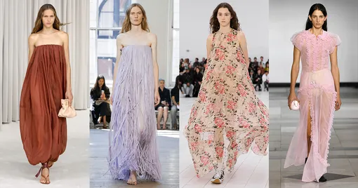 Несмотря на то, что юбки-баллоны постепенно перебираются в список антитрендов, платья в этом фасоне только начинают набирать популярность: выбирайте любую вариацию, что придется вам по душе — экстра-мини, подчеркивающая ноги, или классическая макси, едва обнажающая стопы.