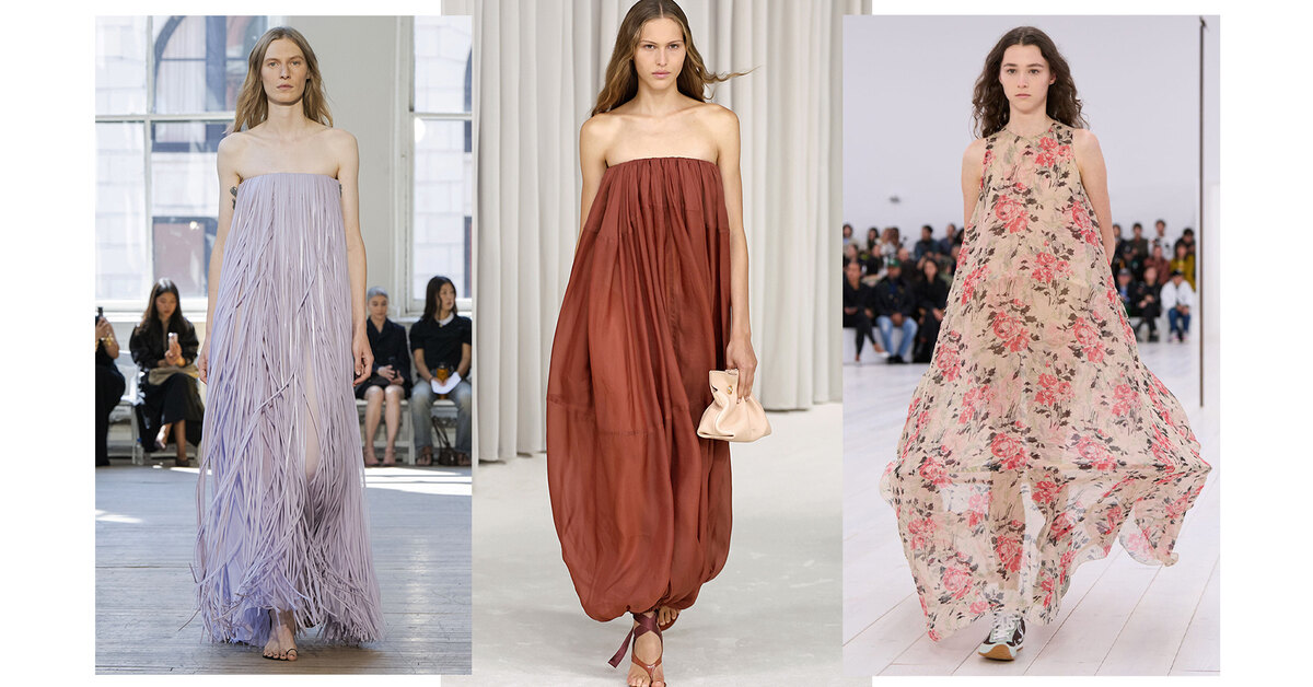 Несмотря на то, что юбки-баллоны постепенно перебираются в список антитрендов, платья в этом фасоне только начинают набирать популярность: выбирайте любую вариацию, что придется вам по душе — экстра-мини, подчеркивающая ноги, или классическая макси, едва обнажающая стопы.