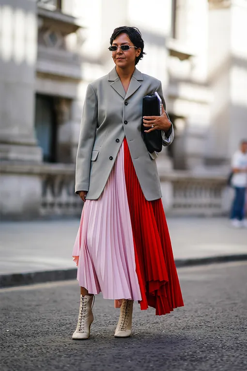 В этом сезоне носим плиссированные юбки с асимметричным подолом