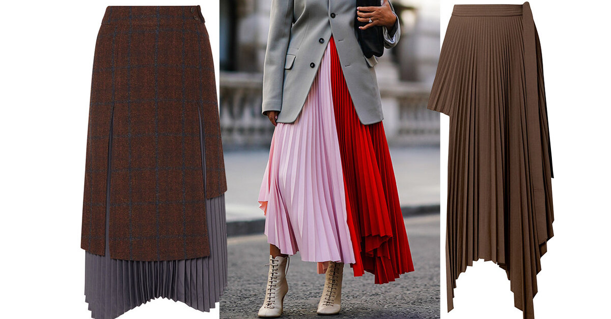 В этом сезоне носим плиссированные юбки с асимметричным подолом