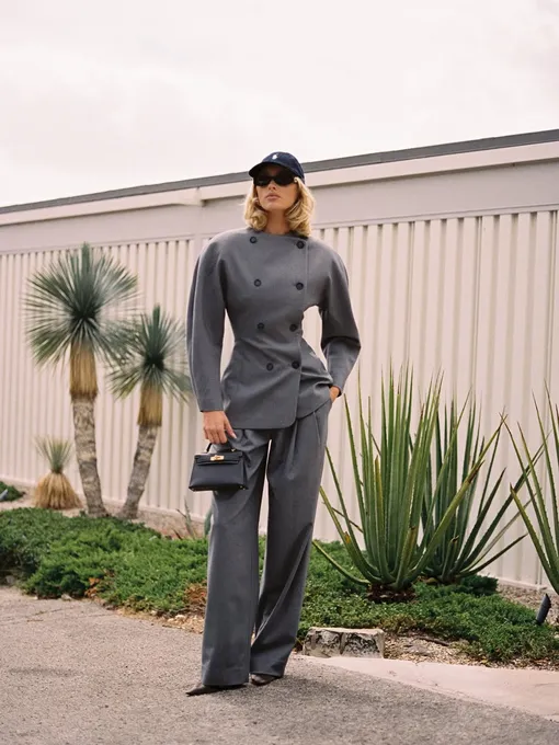 Казалось бы, что может быть проще, чем обычный серый брючный костюм. Этот сет уже давно стал незаменимой классикой вне трендов, которая подходит всем. Ключ к созданию запоминающегося образа — в акцентном головном уборе. Это может быть как кепи в винтажном стиле, так и актуальная спортивная бейсболка, которая в силах создать необычный и запоминающийся контраст. Обувь стоит выбрать на ваш вкус — от лаконичных ботильонов на каблуке kitten heel до женственных лодочек или удобных балеток.