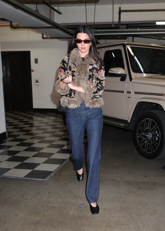 А если монохром кажется совсем банальной идеей, то на помощь придут джинсы. Этот низ стал самым универсальным вариантом для дополнения такого образа, и не зря. Этот сет уже успели примерить такие it-girls как Кендалл Дженнер, Эльза Хоск и Хейли Бибер. Поэтому с ними невозможно прогадать. Цвет денима, модель, посадка и крой — все это можно выбрать на свое усмотрение. Не стоит забывать и про такую опцию как классические черные брюки палаццо — они легко и просто завершат актуальный комплект, добавив ему нотку строгости. Ниже собрали лучшие жакеты с меховой оторочкой, которые можно носить всю весну.