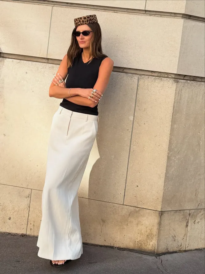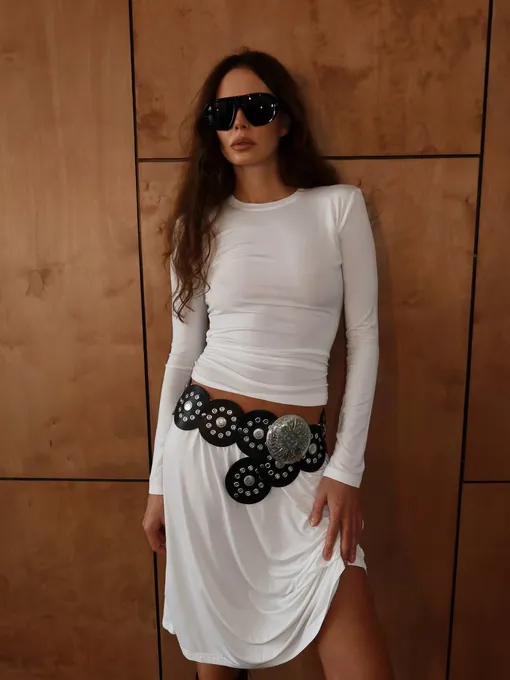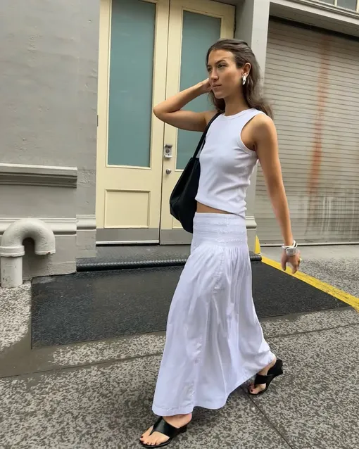 Стилизация остается максимально гибкой. Белая юбка легко сочетается с насыщенными оттенками: от ярких красных топов до красочных гобеленовых жакетов. Не менее выразительно работают комплекты с черным: этот контраст всегда актуален. И даже с белым «верхом» она заиграет, если вы просто добавите классный ремень (или несколько). И в этом ее главное преимущество. Вы не подстраиваетесь под вещь, а она подстраивается под вас. Одна модель закрывает сразу несколько задач и снимает лишние вопросы при составлении образов. Именно поэтому белая юбка становится одним из тех самых элементов, на которых держится весь летний гардероб. Лучшие варианты вы найдете в галерее ниже.