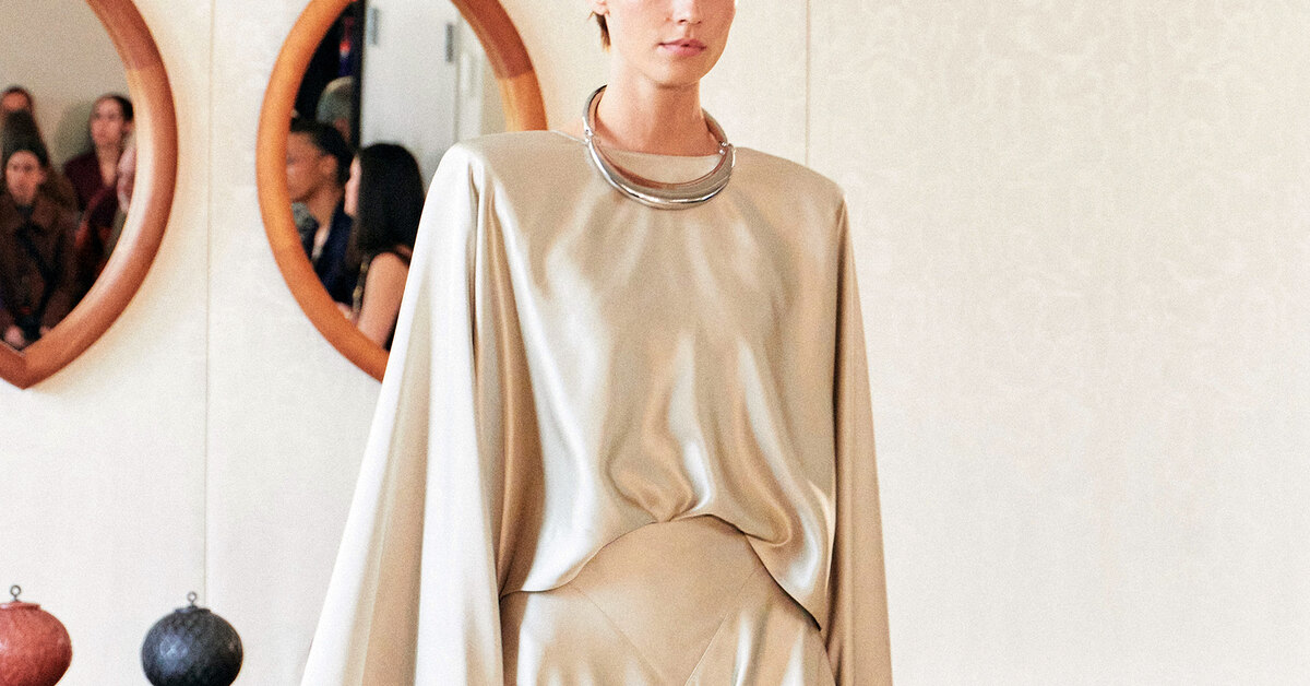 В данном случае среди обязательных условий только струящийся материал и светлый оттенок, крой вы можете выбрать абсолютно любой, опираясь на свои предпочтения и особенности фигуры. Рекомендуем не останавливаться на привычной комбинации с кроем по косой — эту модель вы успеете поносить летом. Особый фокус стоит сделать на фасонах с длинными рукавами, которые расширяются книзу, или вариациях с воротником халтер. Это актуальные, но при этом небанальные фасоны, которые всегда будут выигрышно смотреться.