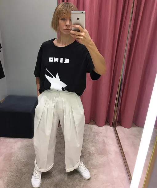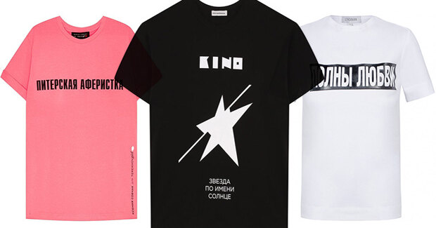 В июне Вика Газинская выпустила капсулу футболок в честь дня рождения Виктора Цоя. Дизайнеру для создания капсулы позволили использовать тексты группы «Кино» и оригинальную графику обложек. Майки мгновенно стали хитом: Цоя, несомненно, слушают и те, кто помнит 80-е, и молодое поколение. Броские фразы, которые не просто говорят, а заявляют, — яркая примета нашей модной эпохи. Последние несколько лет принты на кириллице появлялись в коллекциях зарубежных дизайнеров не реже, чем в отечественных.