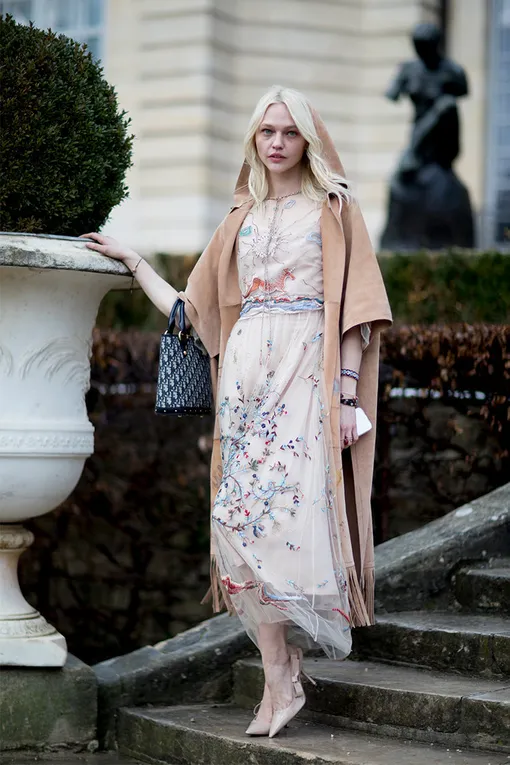 Весна в этом году не спешит приходить к нам в гости, вот и Москву сегодня с утра вновь засыпало снегом, но мы не хотим унывать, а предлагаем поднимать себе настроение при помощи изящных платьев с цветочной вышивкой, как это делают героини европейского стритстайла.