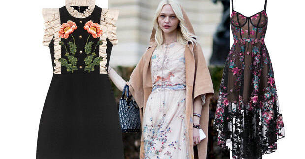 Весна в этом году не спешит приходить к нам в гости, вот и Москву сегодня с утра вновь засыпало снегом, но мы не хотим унывать, а предлагаем поднимать себе настроение при помощи изящных платьев с цветочной вышивкой, как это делают героини европейского стритстайла.