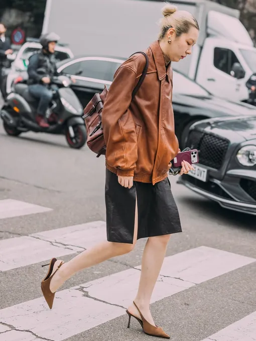 Стиль начинается не с покупки трендов, а с понимания себя. Характер, ритм жизни, особенности фигуры — именно они задают направление гардеробу. Одежда лишь развивает эту историю: через силуэты, фактуры и крой. Первый шаг почти простой — внимательно рассмотреть то, что уже у вас есть. Какие вещи вы носите чаще всего? Какие цвета и материалы дарят ощущение уверенности? Ответы на эти вопросы помогают выстроить основу. И только потом стоит обратиться к социальным сетям и подиуму. Иногда для обновления образов вовсе не требуется шопинг. Достаточно стилистических приемов. Мы уже говорили о том, как подчеркнуть талию или про тренд на длинные манжеты. Еще один эффектный ход — соединить в одном образе кожаную куртку и кожаную юбку.