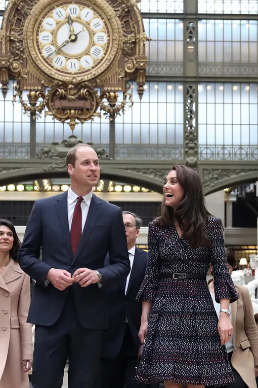 Не забыли супруги и о достопримечательностях французской столицы: Уильям и Кейт побывали на выставке импрессионистов в Музее Орсе и сделали фото на фоне Эйфелевой башни. И если на официальных приемах герцогиня Кембриджская блистала в нарядах от британцев Alexander McQueen, Catherine Walker и Jenny Packham, то для «туристической программы» выбор был сделан в пользу платья-пальто от Chanel – как дань уважения французской моде.