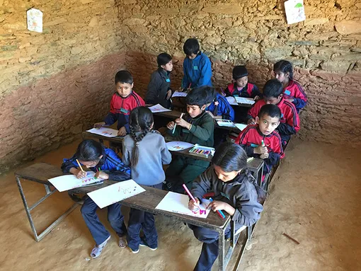 Из Москвы я прилетела в Катманду, а оттуда за три часа доехала на автобусе в город Долалгат. За все время дороги я встретила лишь одного человека, говорившего по-английски: им оказался 12-летний школьник, рассказавший, что в его родную деревню волонтеры тоже приезжают. Выйдя из автобуса, я поняла, что краски, которые я привезла с собой, уже стекают мне на джинсы. В Долалгате меня встретил директор школы и еще один новый волонтер. Там мы поели суп, легли спать и утром отправились в деревню Сапинг, где была моя школа. С учетом пересадок и ночевки в Долалгате весь путь занял около суток. Добравшись до Сапинга, я обнаружила, что школа состоит из двух зданий без окон, дверей и туалета. Не могу сказать, что зрелище меня шокировало, – я более-менее понимала, куда еду. Главную новость я узнала позднее: из-за сильного землетрясения вода здесь появляется редко, а мыло и зубная паста есть дома не у всех учеников. Из-за этого многие «моют» руки чем-то сыпучим: пеплом или песком. Об этом в методичке ВОЗ не говорилось. Так занятия гигиеной превратились в уроки английского языка.