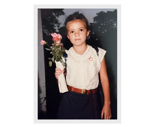 Полночи перед первым школьным днем никак не могла уснуть – очень волновалась. Линейку помню во всех подробностях. Шел 1998 год и лил дождь. Все стояли на улице рядом с футбольным полем. На мне был зеленый сарафан в клетку и красные резиновые сапоги: мы жили в Царицыно, а грязи там по колено. Я не успела понять, что происходит, как меня взяла за руку старшеклассница и повела к зданию школы. А мама с новенькими лаковыми туфельками с бантиком, купленными мне на сменку, осталась где-то в толпе других мам и пап. Я топала в грязных резиновых сапогах по лестнице, нас всех торжественно вели старшеклассники. «Черт, вот не успеешь надеть!» – запричитала шедшая позади меня девочка в грязных белых джинсах. Старшеклассница ругалась, я плакала. Вся зареванная, я села в первый раз за парту. И тут пришло спасение: в класс зашла моя мама. В руках она держала пакет со сменкой – 1 сентября было спасено.