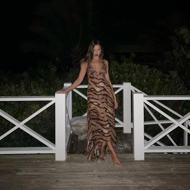 Для большинства из нас Новый год — начало новой главы в жизни и по-настоящему особенный праздник. Это, к тому же, всегда отличный повод присмотреть себе новое платье, ведь в главную ночь в году каждой из нас хочется выглядеть идеально. По традиции, чтобы наступающий год прошел удачно, его нужно встретить в предпочтительных для покровителя года цветах и оттенках. Даже находясь далеко за пределами родины, Ирина Шейк помнит эту неизменную традицию и охотно ей следует. Поскольку по восточному гороскопу 2022 — год Черного или Голубого Водяного Тигра, астрологи назвали главными цветами наступившего года лавандовый и королевский синий. Однако Ирина по-своему трактовала установленный астрологами «дресс-код»: 35-летняя супермодель решила встретить Новый год в потрясающемся струящемся платье-комбинации с тигровым принтом. В этом наряде звезда босиком позирует на новых фотографиях в своем Instagram (Социальная сеть признана экстремистской и запрещена на территории Российской Федерации), то изображая дерзкий «кошачий» взгляд, то озаряясь широкой улыбкой.