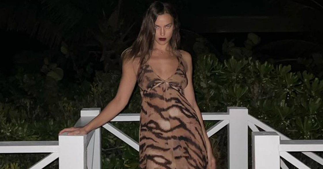 Дикая кошка: Ирина Шейк отметила Новый год в полупрозрачном платье с принтом тигра и очень глубоким вырезом