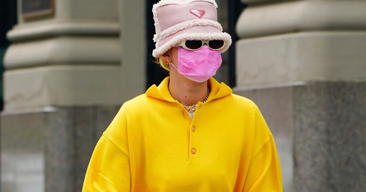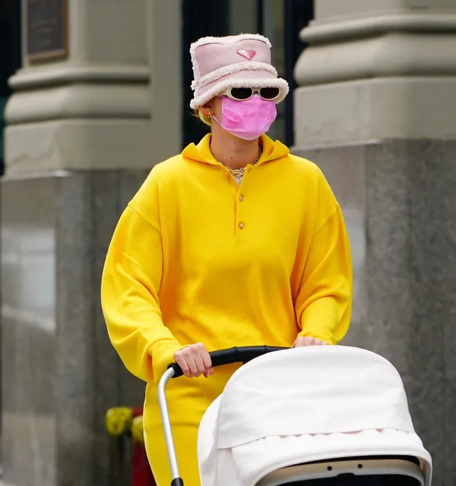 Супермодель и молодая мама для недавней прогулки с дочерью выбрала спортивный костюм в самом модном оттенке года по версии Pantone — желтом. Правда, дополнить его она решила не серым, который институт предлагает в качестве второго самого модного, а розовым — в разных тонах этого жизнерадостного цвета она выбрала обувь и аксессуары. Меховая панама Prada, яркие кроссовки и даже защитная маска для лица — все исключительно в розовом. Получилось контрастное и яркое сочетание, которое скрасит любые серые будни.