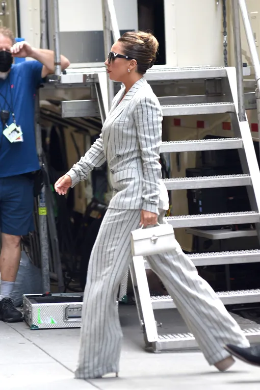 И в офис, и для стритстайла: Леди Гага в идеальном брючном костюме в полоску на все случаи жизни