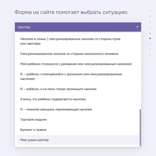 Если вы оказались в трудной ситуации за рубежом и вам не к кому обратиться за помощью, на сайте организации нужно выбрать страну пребывания, а затем указать вашу проблему (поиск убежища, сексуализированное насилие, насилие по отношению к пожилым или к детям и т.д.). Сервис выдаст подробную инструкцию со всеми необходимыми юридическими нюансами, полезными контактами в указанном регионе и даже приложениями, которые могут пригодиться. Пока список ограничен 9 направлениями от Турции до Великобритании, но «Лабиринт» прорабатывает еще 31 страну.